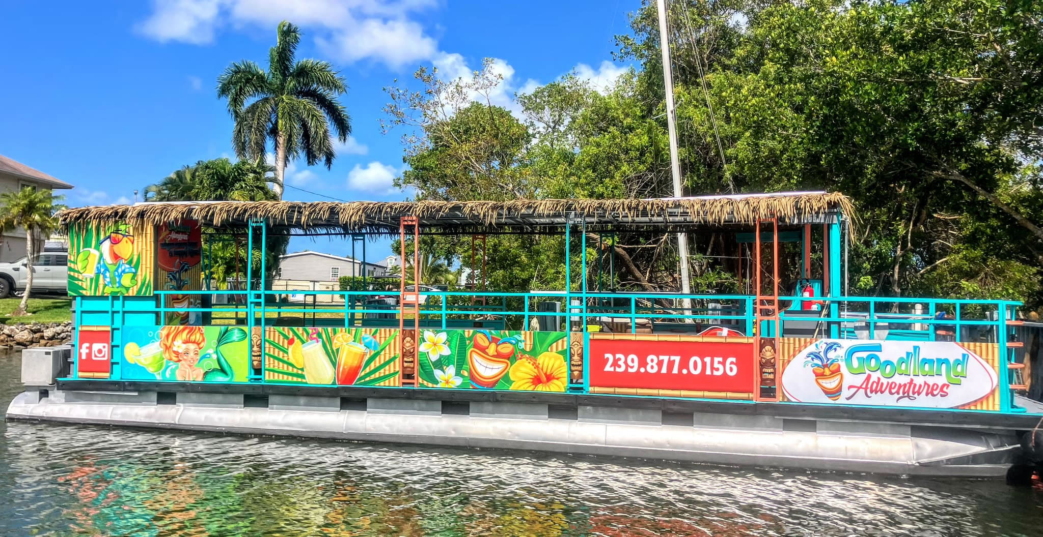 Behold the beauty and wildlife of the 10,000 islands or relax and sit back while experiencing a spectacular sunset aboard Goodland Adventures tiki boat. Our Unique 40' tiki pontoon boat can hold up to 22 passengers. And is suitable for any occasion.